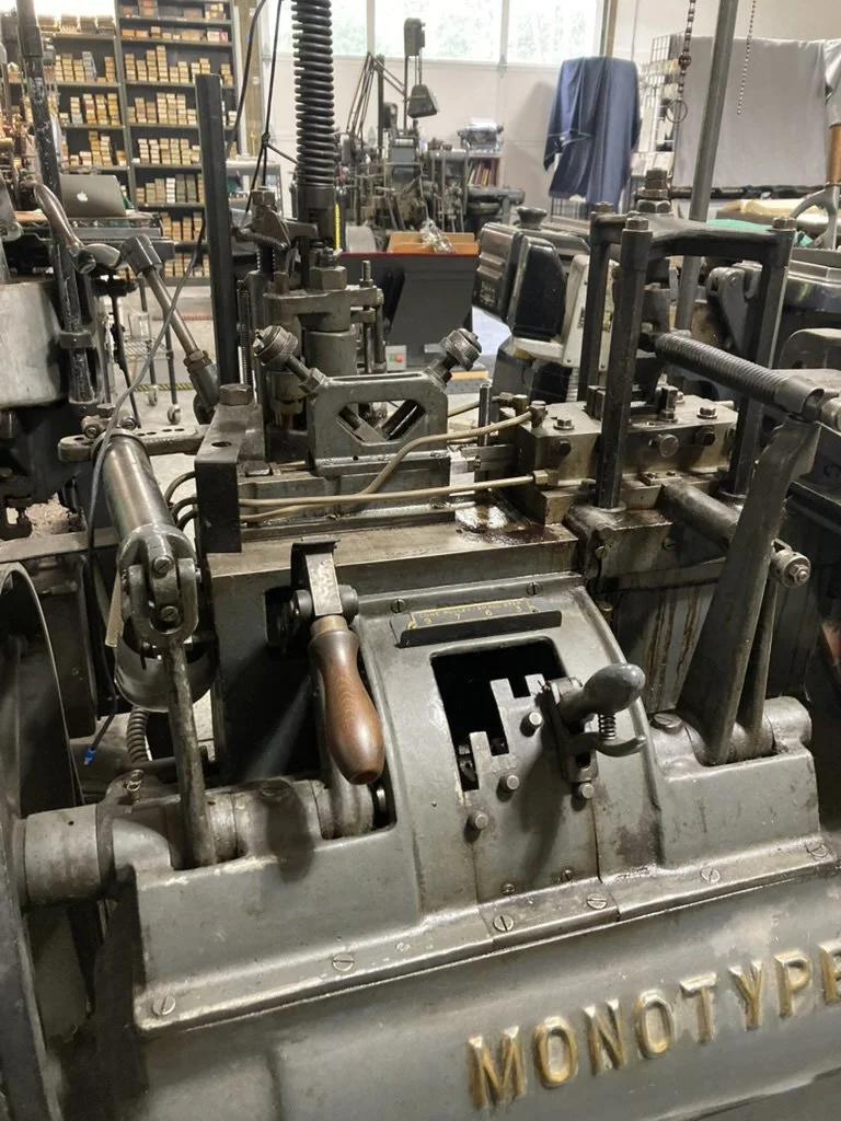 Tuesday. April 21st. Quick note today: just stopping in to take measurements for new parts storage racks. I have high hopes for a new parts storage system - much needed is a way to quickly locate parts for Monotype, Thompson and Linotype without having to pack and unpack boxes to find them.... Also: it's a cool rainy day. Also: we rented a nifty electric delivery van to move furniture from and to Portland. impressive technology. That electric cargo van (Brightdrop by General Motors)